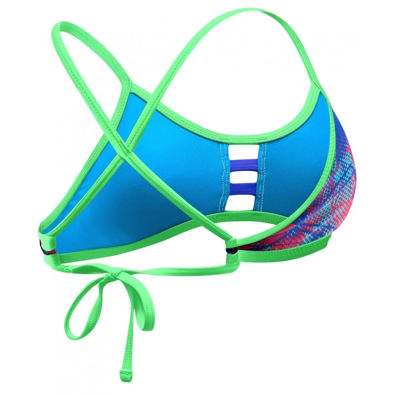 Gemaakt van 100% polyester, Durafast Oneâ„¢ en is minimaal 100% bestendig bij blootstelling aan chloorwater voor 300 uur. Deze duurzame textielvezel gaat tot 20 keer langer mee dan traditionele zwemkleding. Urenlang trainingsplezier! Durafast Oneâ„¢ verzorgt een kleurvastheid van 100% en heeft een onovertroffen zonbestendigheid. Onze 4 richtingen stretchtechnologie (de stof rekt in 4 richtingen uit) helpt Durafast Oneâ„¢ zwemkleding haar perfecte pasvorm lang te behouden. De Canvas Pacific Tieback Top blijft ook uitstekend zitten, ook bij het duiken en de keerpunten! BPCAN – de ideale sportbikini van TYR!