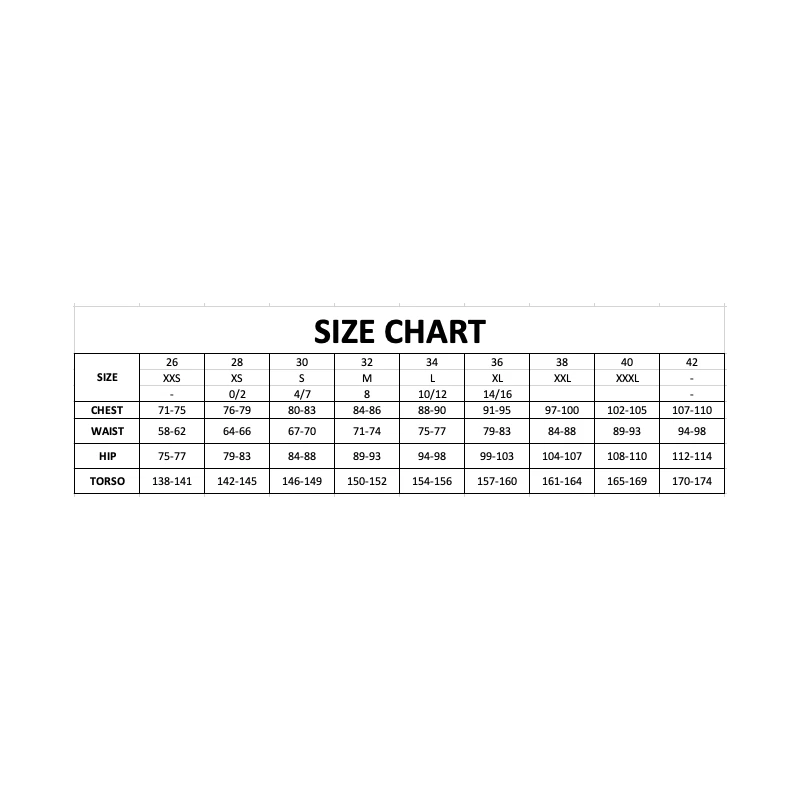 | Maat | 26, 28, 30, 32, 34, 36, 38 |