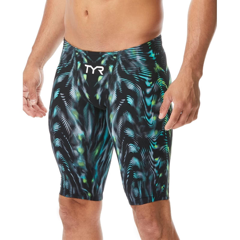 TYR Venzo: zwemkleding van de nieuwste technologische innovatie. Voor het eerste en enige technische pak in de zwemwereld dat de weerstand in het water vanuit microscopisch perspectief analyseert, worden voor de TYR heren Venzo Genesis Jammer, ultragladde vezels verwerkt tot een weerstandloos duurzaam materiaal.